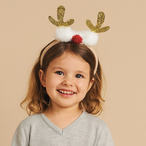 Balaca navideña multicolor, reno blanco con nariz roja escarchada, peluche blanco y cuernos dorado